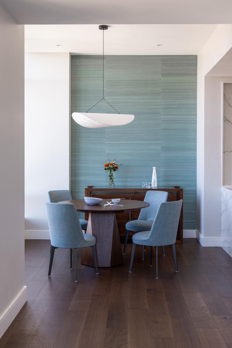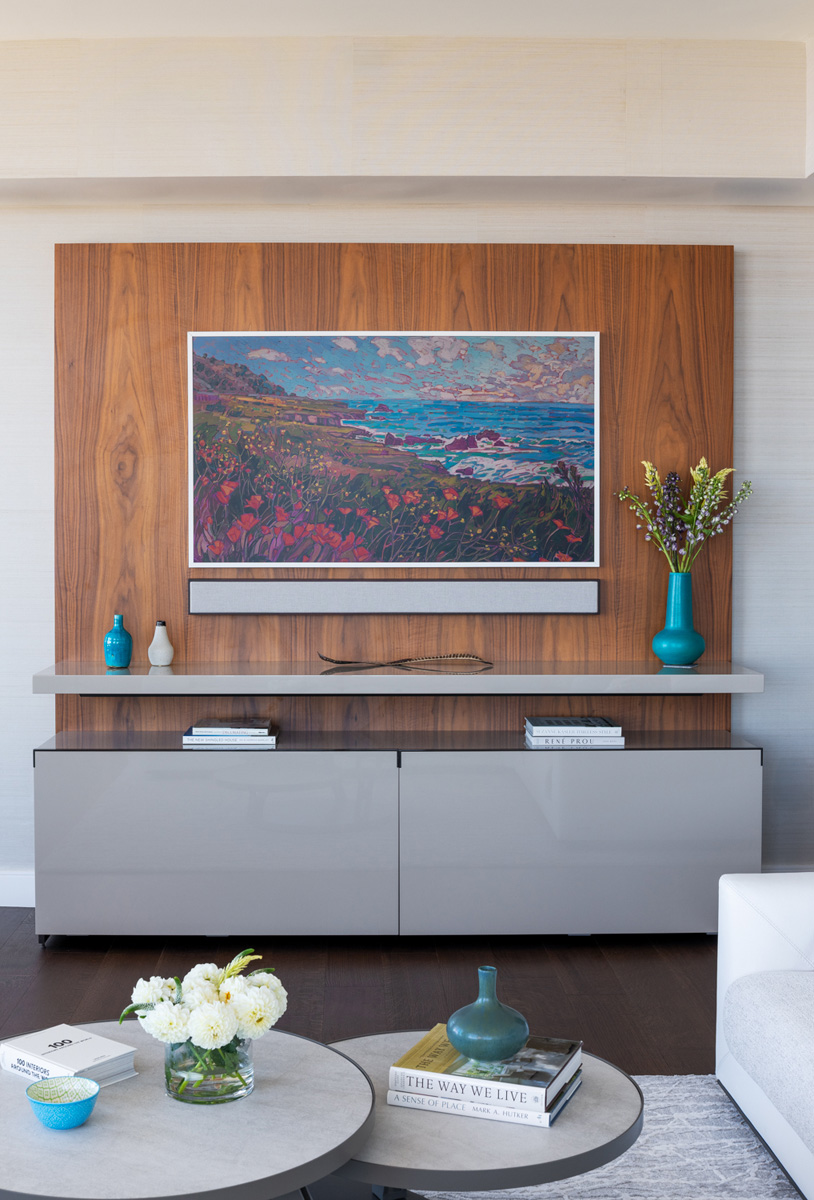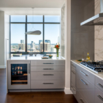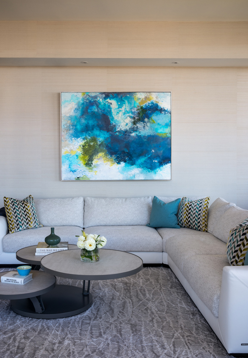Modern design in a Boston skyscraper penthouse. The previous owner's decor was very traditional and in need of an update. The new owners wanted something that felt clean and modern, very much "city living." They wanted to be able to entertain and to have a place their adult children would want to visit. The views of the 4th of July fireworks and the Esplanade at the Charles River make for wonderful parties.